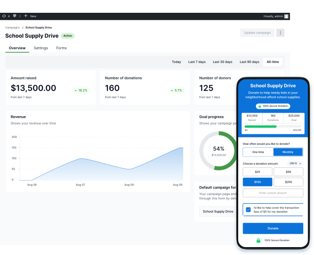 Successful fundraising is about creating a movement. Designed for organizations of all sizes, Campaigns simplify fundraising and help you make a lasting impact.